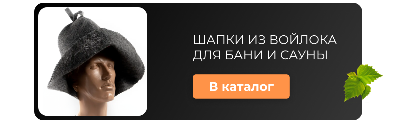 Незаменимым аксессуаром для посещения бани и сауны является банные шапки. Они выполняют защитную функцию, поддерживают стабильный микроклимат, не допускают негативного воздействия высокой температуры на голову и волосы. Для изготовления использован толстый слой войлока, который помимо защитной функции отличается влагоотталкивающим и антибактериальным эффектом.